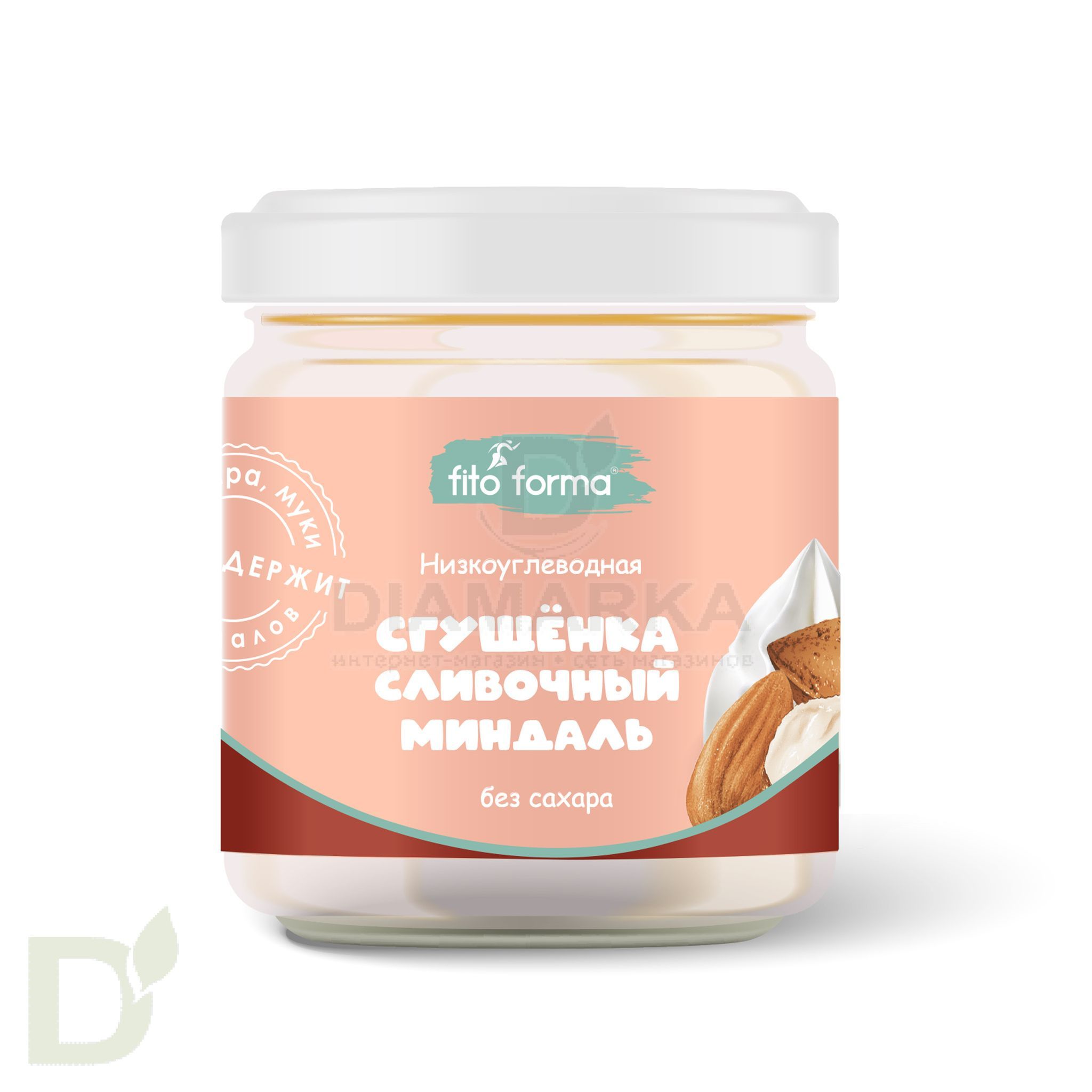 <h2>Низкоуглеводная крем-паста без сахара для тех, кто на диете</h2> Сгущенка - это лакомство из детства. С блинчиками, сырниками, даже хлебом... да что уж там, многие ели ее ложкой прямо из банки! А сладость такая, что челюсть сводит...<br> <br> Уже во взрослом возрасте мы понимаем, что сгущенка - не самый полезный продукт. В ней много сахара, жиров и лишних калорий. Но отказаться от любимого лакомства непросто.<br> <br> Сгущенка Fito Forma - это десерт, который смело можно отнести к классу "ПП-продукты"!<br> <br> <h3>Чем хороша сгущенка Fito Forma?</h3> <ul> <li>в ней в среднем в 5 раз меньше калорий</li> <li> в 6 раз меньше углеводов</li> <li> в составе нет сахара</li> <li> натуральный, естественный, в меру сладкий вкус</li> <li> безопасный состав</li> </ul> <h3>Как и с чем съесть сгущенку?</h3> Уверены, вы и сами знаете как расправиться с этим продуктом. Но пару идей вам все же подкинем ;)<br> <ul> <li>в качестве намазки на тосты, хлебцы, печеньки, блинчики, оладьи или сырники</li> <li> с запеканкой или кашей</li> <li> как вкусоароматический компонент для крема при приготовлении домашних десертов и тортов</li> <li> в сгущенку вкусно макать дольки яблок, персиков, банана или других фруктов</li> <li> чайная ложка такой сгущенки в кофе сделает напиток вкуснее!</li> </ul> <h4>Пищевая и энергетическая ценность на 100 грамм пасты</h4> усваиваемые ккал 130<br> 14,8 жиров<br> 4,8 углеводов<br> 8 белков<br> 40 грамм пищевых волокон<br> <br> Масса нетто: 280 грамм<br> <h4>Состав низкоуглеводной сгущенки</h4> вода очищенная, изомальтоолигосахарид (пребиотик), сухое обезжиренное молоко, миндаль, натуральный ароматизатор, консервант сорбат калия.